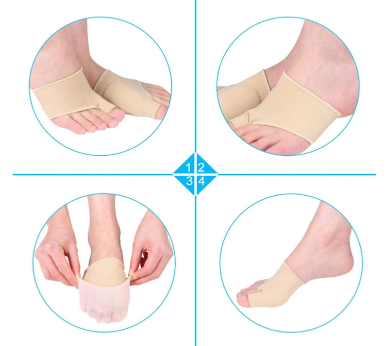 El protector para juanetes está fabricado con gel de silicona médica suave y una funda elástica transpirable, que se ajusta perfectamente al contorno del pie. Su función principal es amortiguar la presión y reducir la fricción que se produce en el hueso del juanete al caminar o usar calzado cerrado.