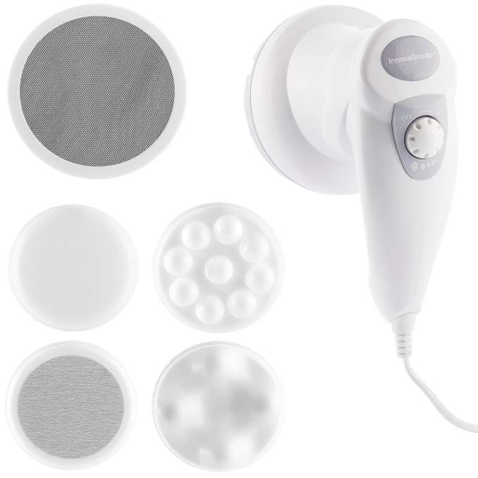 - El cabezal oscilante de velocidad ajustable permite cambiar de un masaje relajante a uno más potente capaz de trabajar profundamente en la piel. Combate las adiposidades localizadas, estimula la circulación sanguínea y tonifica los músculos. El aparato dispone de tres cabezales diferentes y un accesorio de red para su correspondiente cobertura.