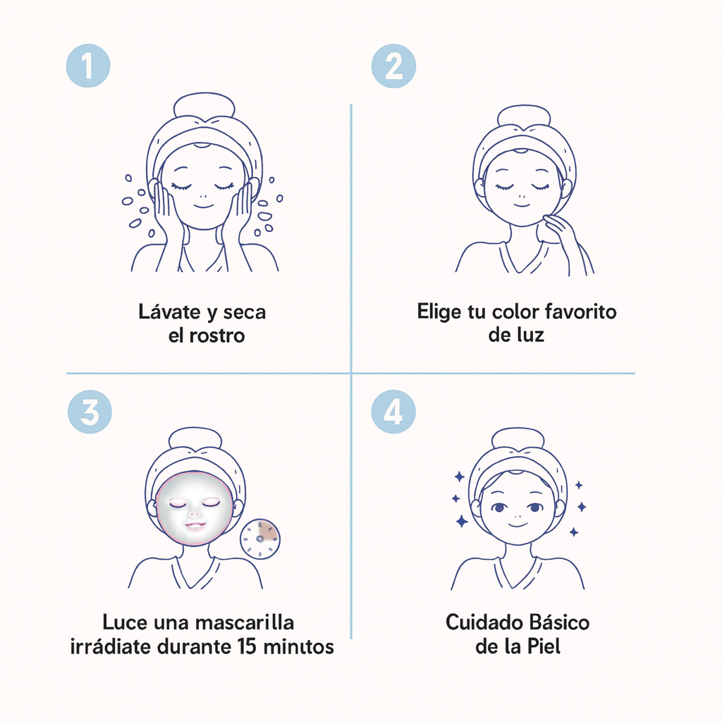 Coloca la máscara sobre tu cara y selecciona el color adecuado según tu objetivo.